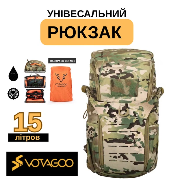 Тактичний штурмовий рюкзак Мультикам Votagoo 15 літрів військовий універсальний