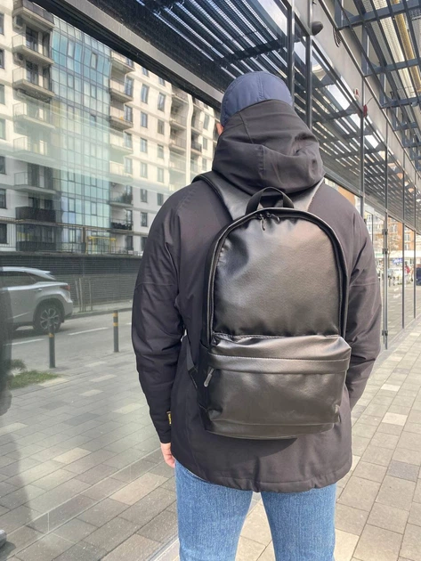 Рюкзак для ноутбука Чорний Без бренд Міська сумка з зносостійкої гладкої екошкіри об'єм 22 літра 45 х 28 х 12