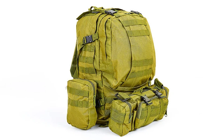 Рюкзак безкаркасний туристичний зі знімними поясними сумками RECORD 60 літрів TY-7100 53х32х16см Оливковий