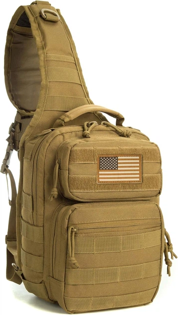 Військовий тактичний однолямочний рюкзак на 10л через плече, сумка армійська Oxford 600D плечова Койот