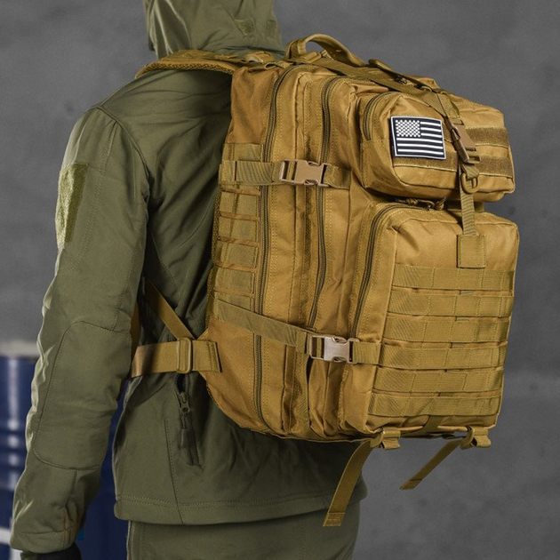 Військовий тактичний рюкзак 50л штурмовий Oxford 800D зі системою кріплення MOLLE водостійкий на 2 лямки Койот