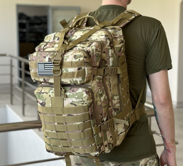 Військовий тактичний рюкзак 50л штурмовий Oxford 800D зі системою кріплення MOLLE водостійкий на 2 лямки Мультикам