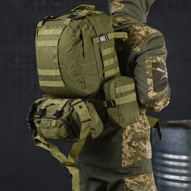 Рюкзак Silver Knight 55 л з 3 підсумками Cordura 1000D олива розмір 50х32,5х34 см