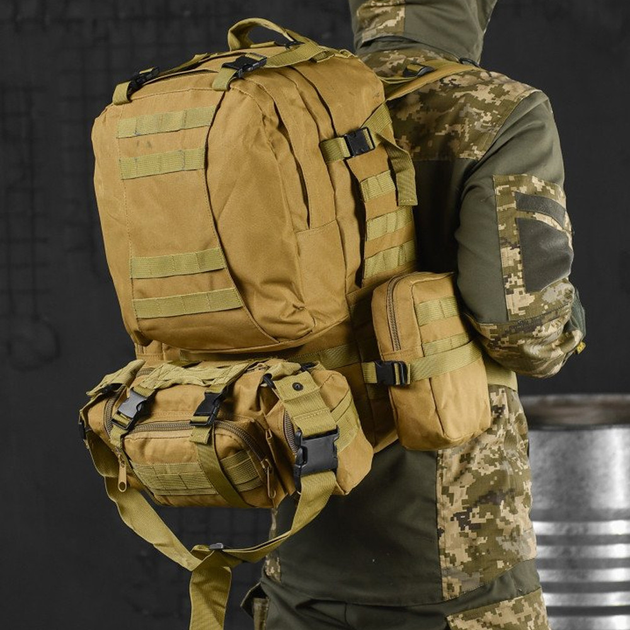 Рюкзак Silver Knight 55 л з 3 підсумками Cordura 1000D койот розмір 50х32,5х34 см