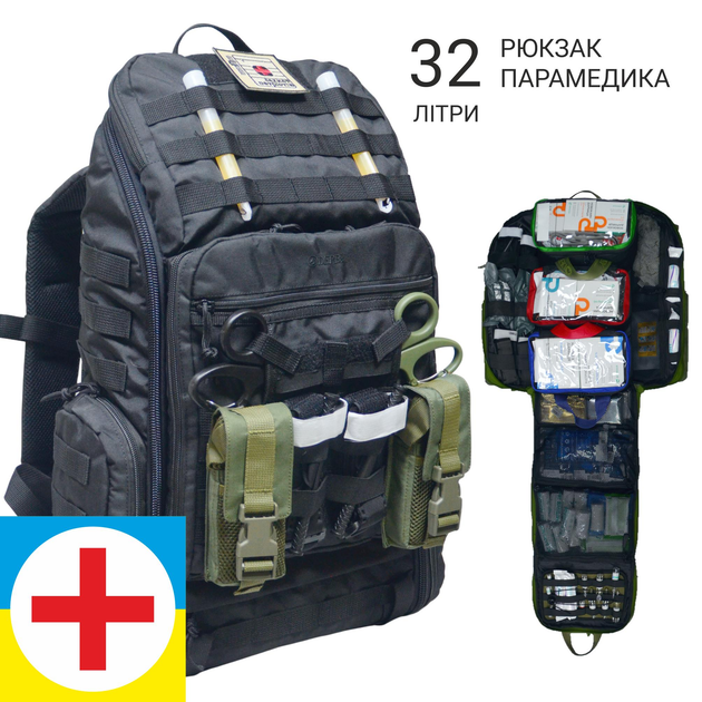 Тактичний медичний рюкзак сапера вибухотехника лікаря ДСНС МВС рятувальника парамедика мінера DERBY SKAT-2 чорний