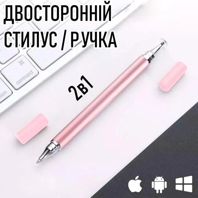 Двосторонній універсальний стилус-ручка 2 в 1 рожевий