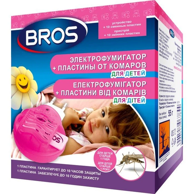 Фумігатор Bros + 10 пластин проти комарів для дітей від 1 року (5904517067844)