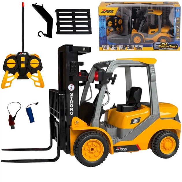 Дитячий радіокерований навантажувач, акумуляторний, з функцією підіймання вантажів і LED-підсвіткою фар