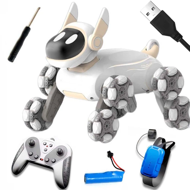 Трюковий робот собака на пульті управління, музика, підсвічування, звуки Білий (i7-165365)