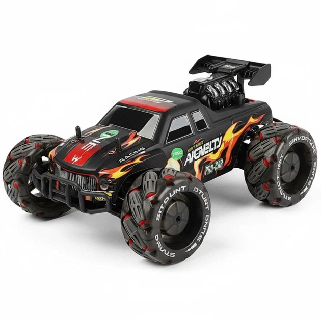 Радіокерована трюкова машина RQ 3039-02, роликові колеса, акумулятор 3.7V, пульт 2.4G, світло, звук, музика, Чорна
