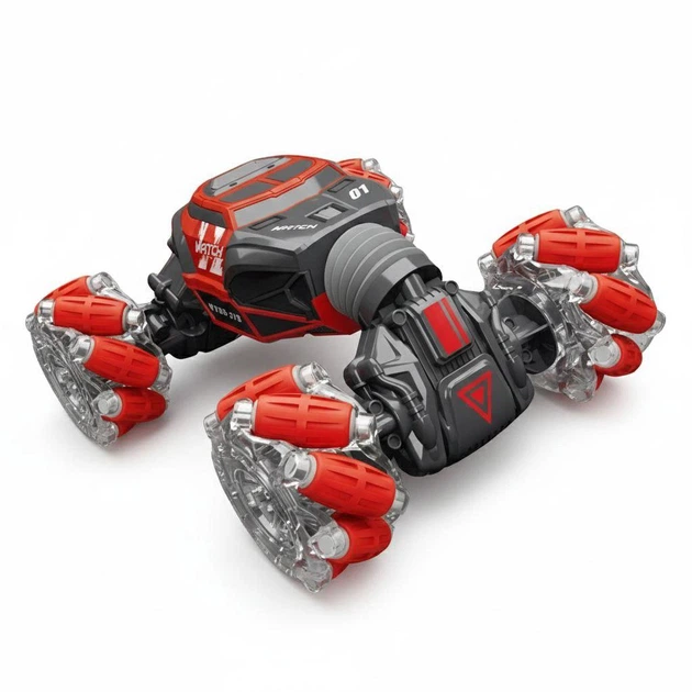 Радіокерована трюкова машина-перевертень 955-233, акумулятор 3.7V, пульт + сенсорний браслет, оберт 360°, червона