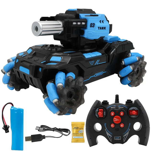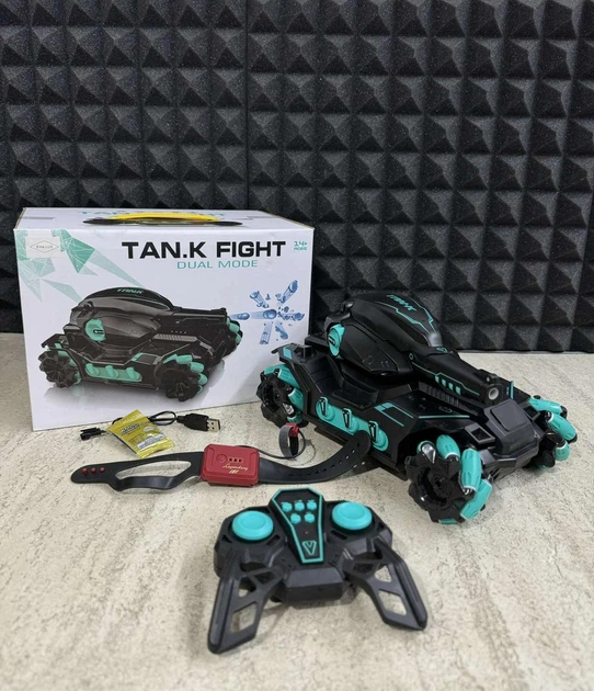 Радіокерований танк-іграшка, що стріляє орбізами Бірюзовий