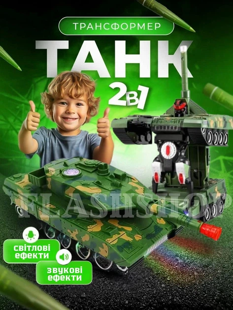 Радіокерований танк-трансформер 555 на пульті керування зі світлом і звуком