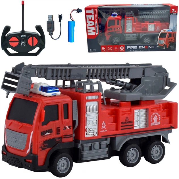 Іграшка Пожежна машина RC з пультом дистанційного керування, поворотною драбиною, USB зарядка 1:16