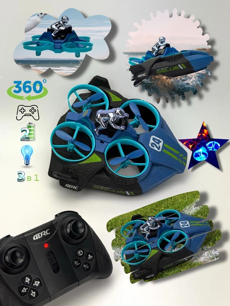 Дитячий вертоліт на пульті керування з LED-підсвіткою 3 в 1 (вертоліт,машинка,катер) — Aelus 4DRC 3-в-1