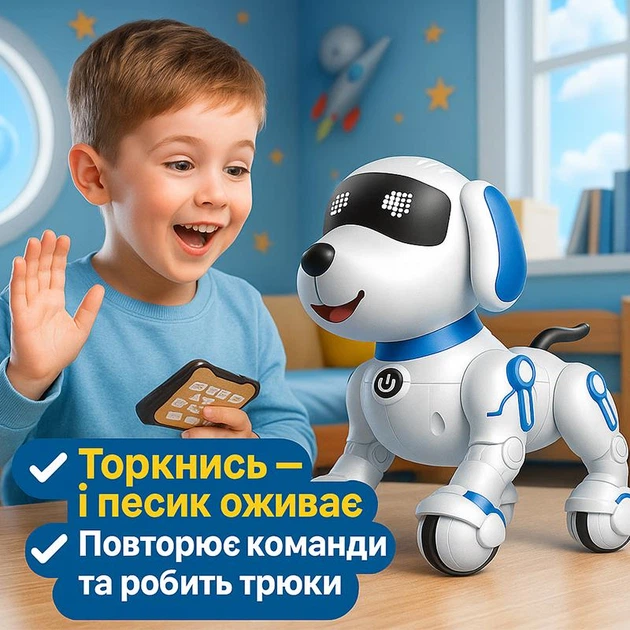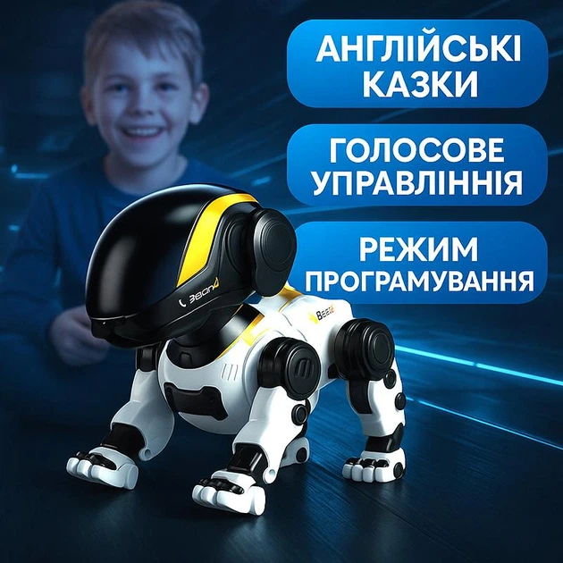 Інтерактивний робот, розумний песик на радіокеруванні з голосовим управлінням піснями казками англійською мовою підсвічуванн