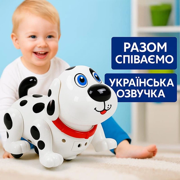 Інтерактивний песик з озвучкою українською мовою, сенсорними датчиками, рухається, співає пісні, розповідає казки та фрази