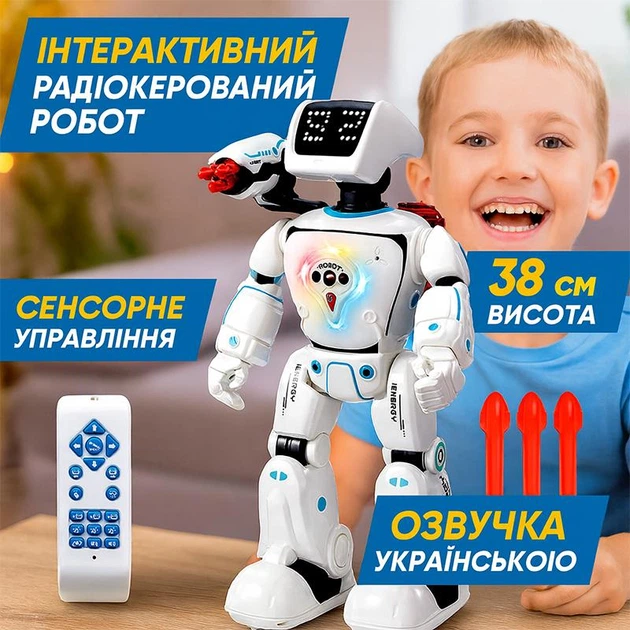 Інтерактивний радіокерований робот 38 см з озвучкою українською, підсвічуванням, сенсорним керуванням, піснями, казками, вік