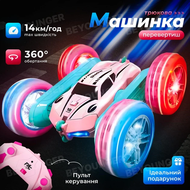 Трюкова ігрова машинка перевертиш TWIST CAR Soli 2.4Gc на пульті радіокерування YKC0013 блакитно-рожева