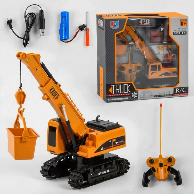 Іграшка кран на пульті керування, гусеничний, на акумуляторі, 25 см, будівельна техніка