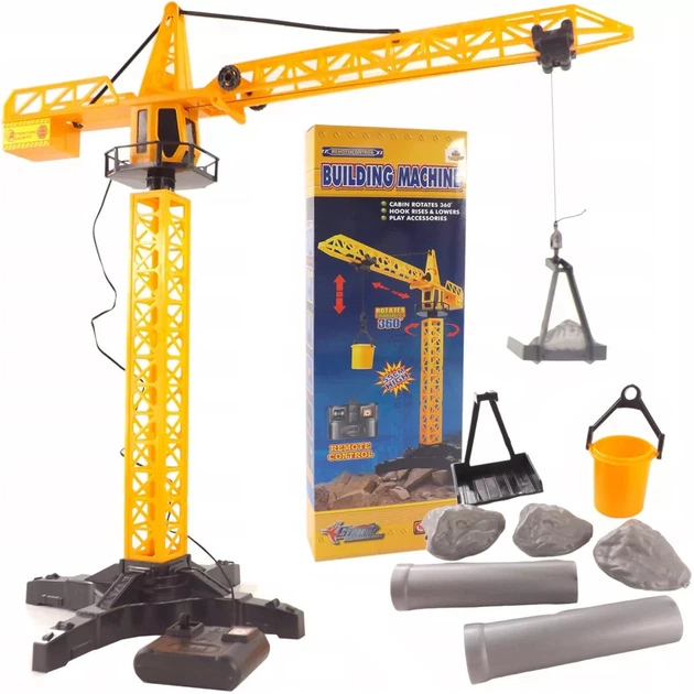 Іграшковий Кран Баштовий 55 см з пультом керування, підйомний гак, аксесуари в комплекті