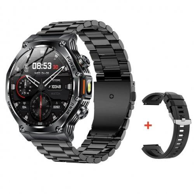 Чоловічий розумний годинник Modfit Titan-X Black Steel + ремінець в подарунок