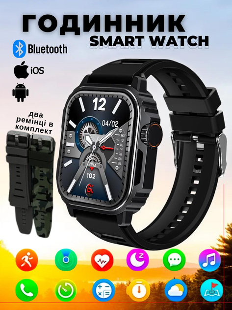 Смарт годинник чоловічий тактичний водонепроникний військовий захищений спортивний фітнес MELANDA MEVADEN K56