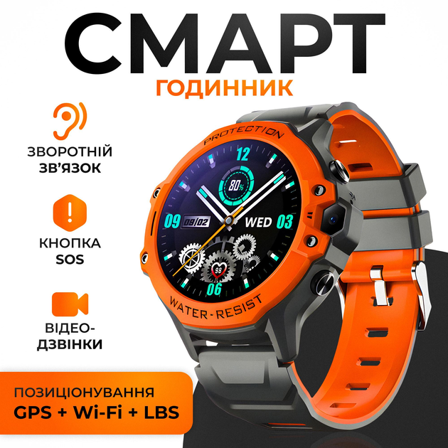 Дитячий / дорослий смарт годинник - телефон Smart Watch 4G SIM-карта, IP67, GPS, кнопка SOS, прослуховування, відеодзвінок,