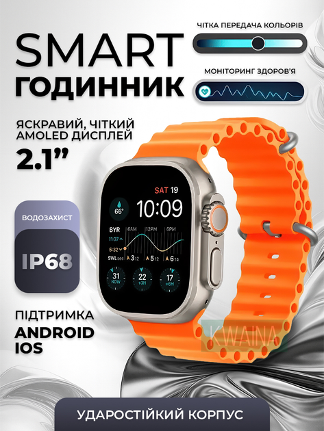 Смарт-годинник з AMOLED-дисплеєм 1.95", IP68, функцією дзвінків, моніторингом здоров'я та спортивними режимами, помаранчевий