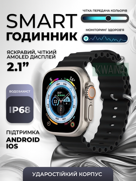Смарт-годинник з AMOLED-дисплеєм 1.95", IP68, функцією дзвінків, моніторингом здоров'я та спортивними режимами, чорний