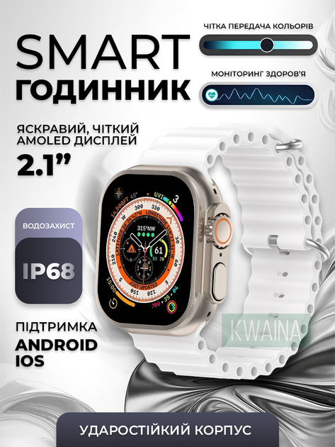 Смарт-годинник з AMOLED-дисплеєм 1.95", IP68, функцією дзвінків, моніторингом здоров'я та спортивними режимами, білий