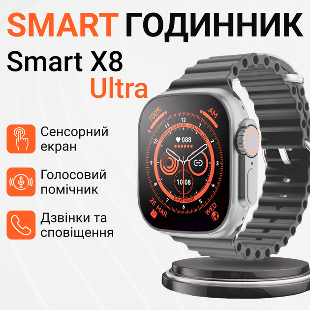 Смарт годинник водонепроникний SmartX8 Ultra для чоловіків і жінок / дзвінки (Android, iOS)