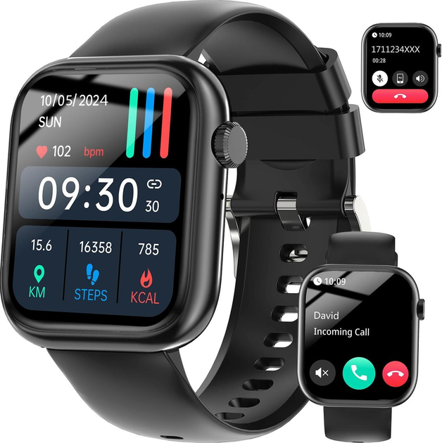 Смарт-годинник унісекс, з дзвінками, крокоміром/монітором серцевого ритму/монітором сну для Android/iOS