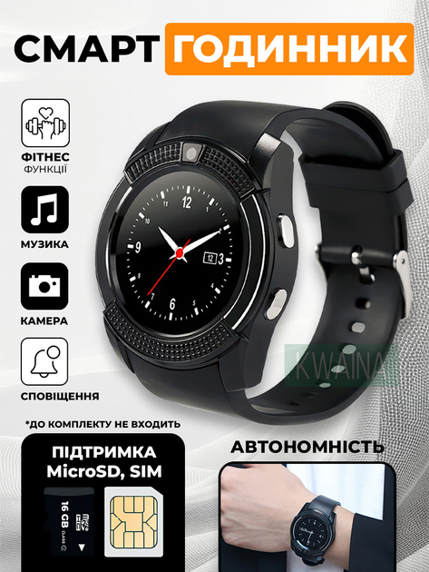 Смарт-годинник універсальний, розумний годинник з підтримкою SIM та microSD, динаміком, мікрофоном, крокоміром та аудіоплеєр