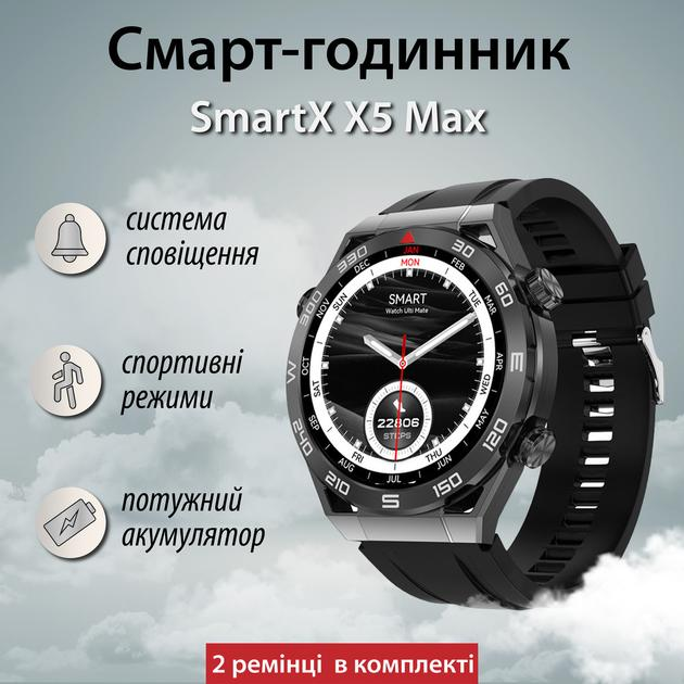 Смарт-годинник Wear Fit SmartX X5Max Black (Android, iOS) чоловічий з пульсометром +2 ремінці Black