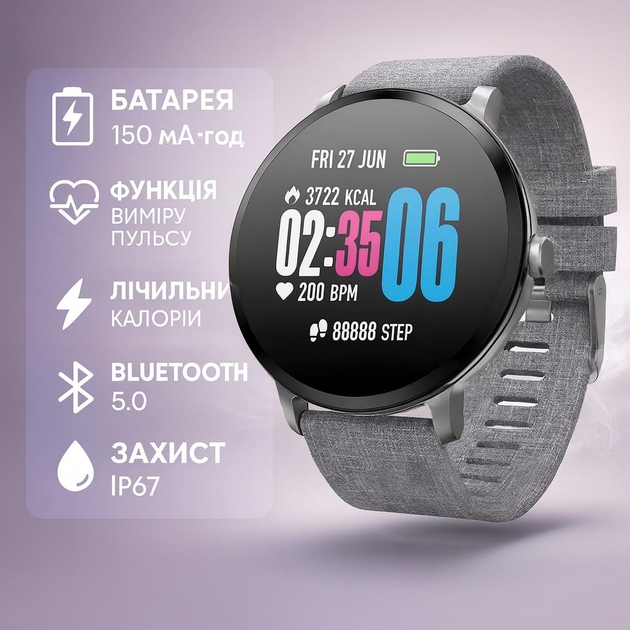 Смарт-годинник KMITX T11 Silver з пульсомірів і тонометром і пульсікометром (оксиметр) з функцією вимірювання рівня кисню в