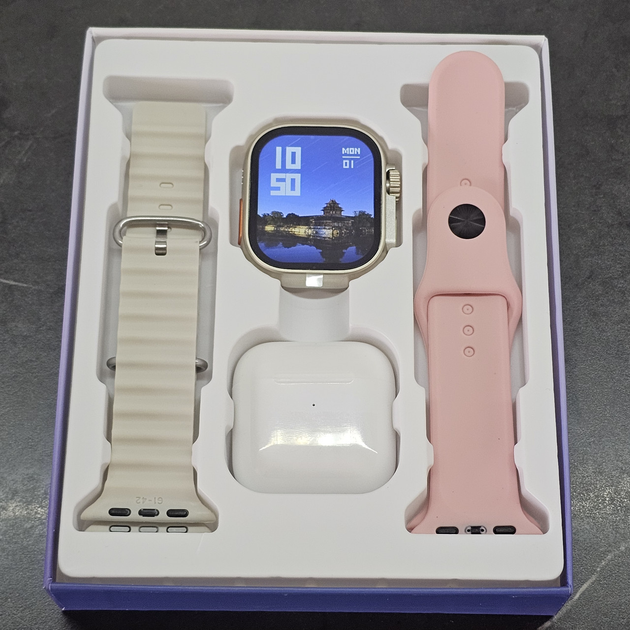 Смарт-годинник Smart Watch Fendior S30 Pro Max Ultra + TWS навушники + з 2 ремінцями сірий з рожевим