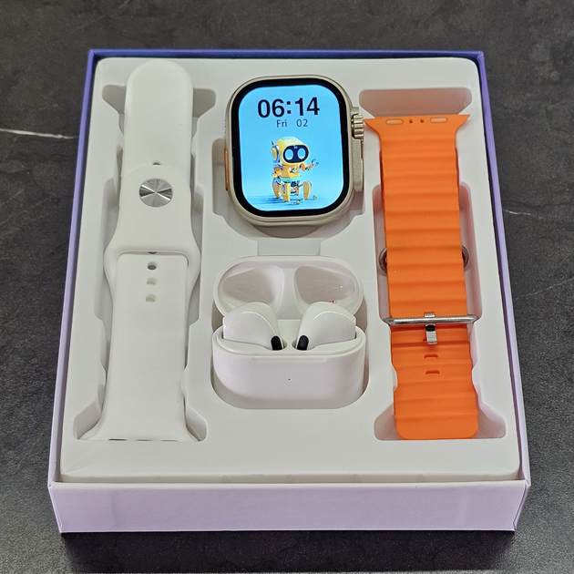 Смарт-годинник Smart Watch Fendior S30 Pro Max Ultra + TWS навушники + з 2 ремінцями померанчевий з білим