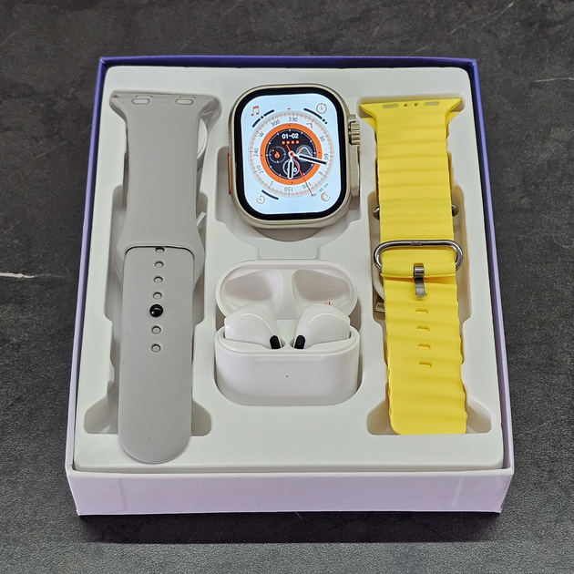 Смарт-годинник Smart Watch Fendior S30 Pro Max Ultra + TWS навушники + з 2 ремінцями сірий з жовтим