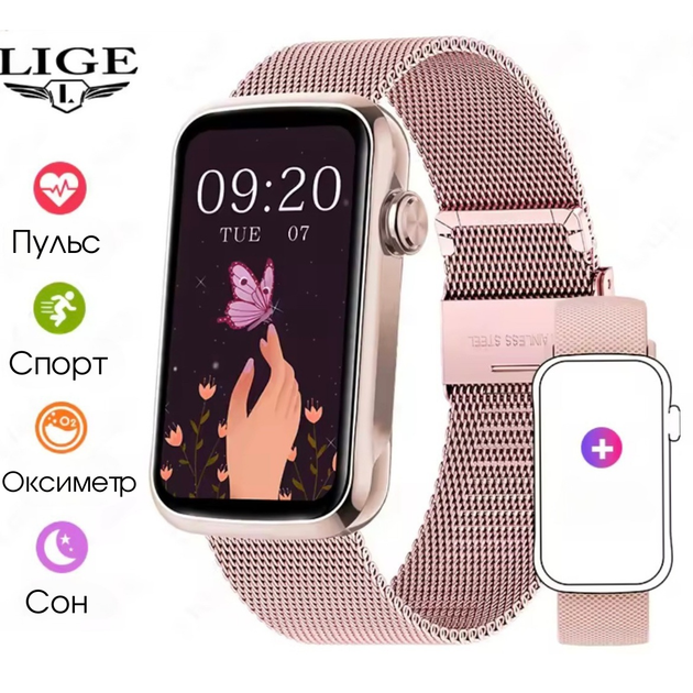 Смарт-годинник жіночий LIGE S22T Pink (пульсометр, моніторинг кисню в крові) 2 ремінці