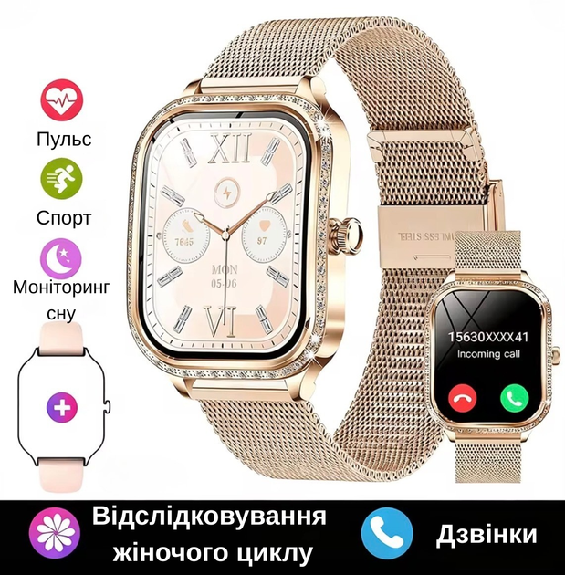 Смарт-годинник Lige MK88 Gold з пульсоксиметром, дзвінки по годиннику, 2 ремінці