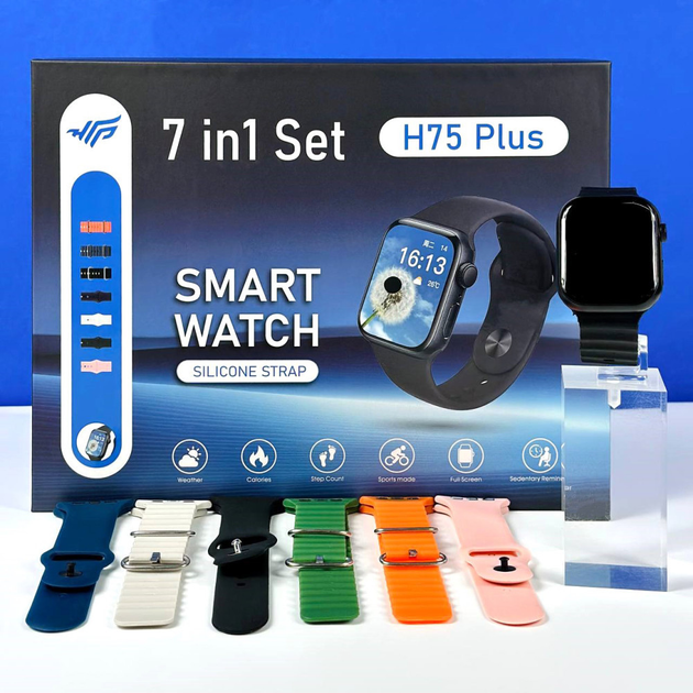 Набір смарт годинник Smart Watch H75 Plus з 7-ма ремінцями Чорний