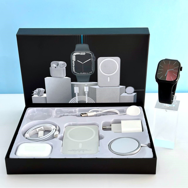 Набір 5 в 1 годинник + навушники + безпровідний павербанк + кабель для бездротової зарядки телефону + зарядний пристрій
