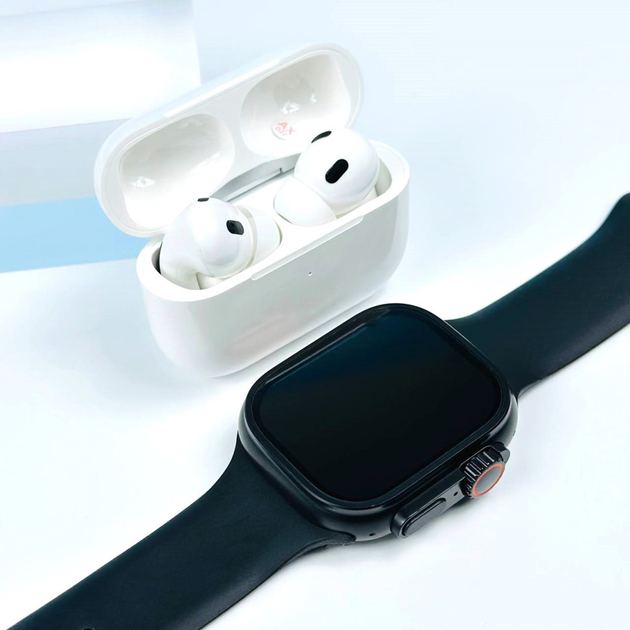 Набір смарт годинник Smart Watch HR5 Ultra3 з 2-ма ремінцями та безпровідними навушниками Чорний