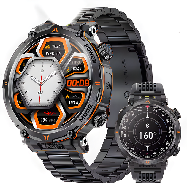 Військовий смарт годинник для чоловіків 1.7" з потужною батареєю 600 мАг, дзвінками, вимірюванням тиску, ліхтариком так комп