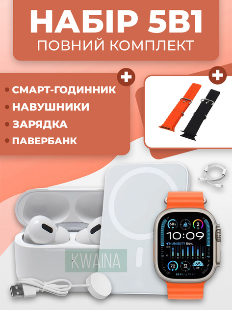 Набір 5в1: смарт-годинник + бездротові навушники + павербанк MagSafe + кабель зарядки + зарядний пристрій