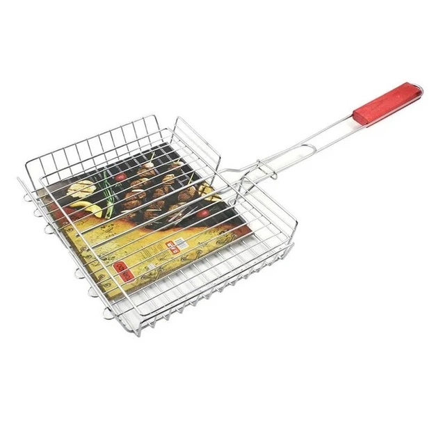 Решітка-гриль сітка для барбекю з дерев'яною ручкою 28x21.5x5.5 см (довжина з ручкою 53 см) Zauberg