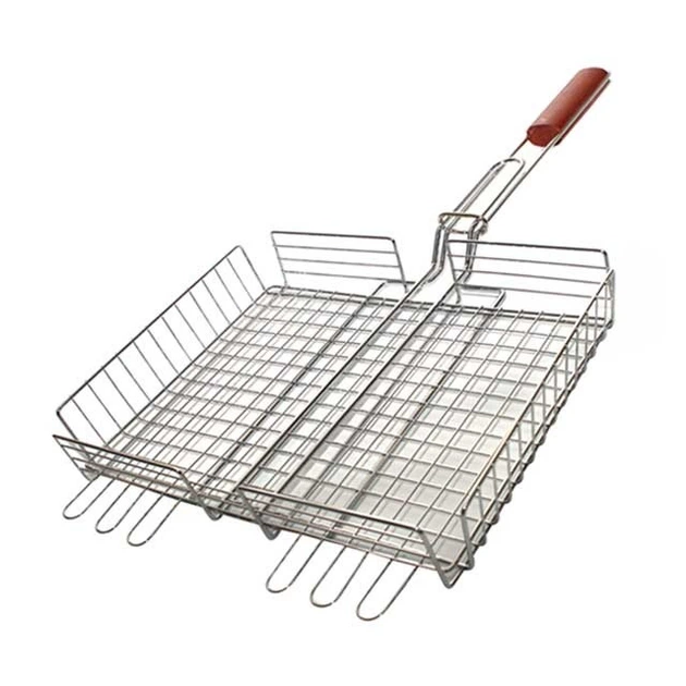 Решітка для гриля Скаут з дерев'яною ручкою, 35х26х2 см