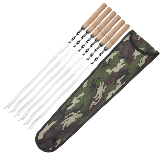 Набір 6 шампурів 600/10/3мм Дерев'яна ручка Лак нержавійка з чохлом
