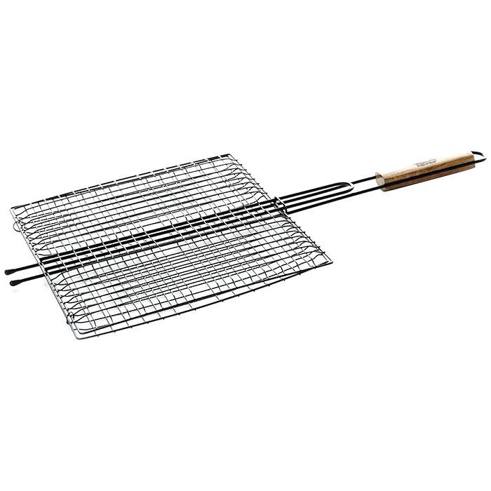 Легко моется и очищается. Длинная ручка с деревянным наконечником не нагревается. Благодаря хромированному покрытию решётка не подвергается воздействию высоких температур и не деформируется.